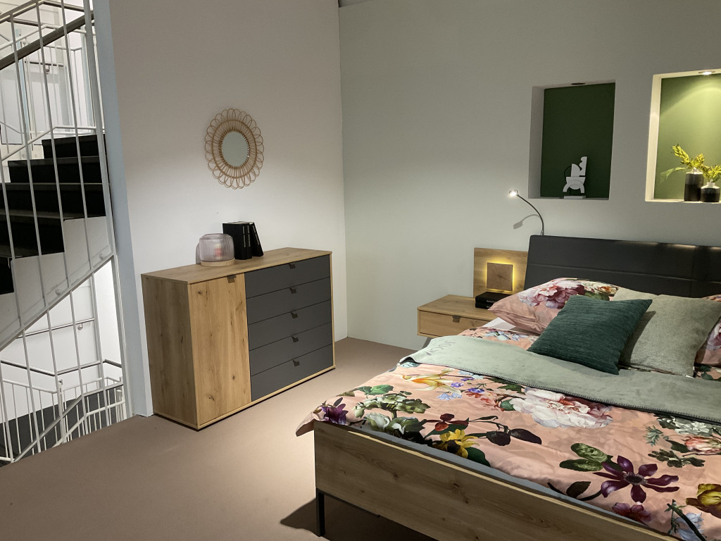 1 x Doppelbett 621 Polster-Kopfteil in Kunstleder Lava mit schmalem Winkelfuss in Schiefer ca. 180 x 200 cm