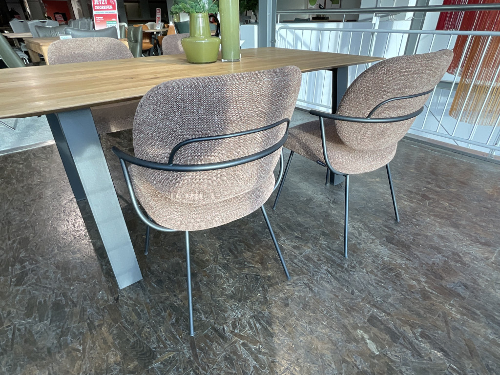 EsstischPlatte: Massivholz Eiche rustikalGestell: Metall anthrazitca. 180 x 77 x 100 cm4 x Stuhl Bezug: Stoff Sneak hazelGestell: Metall anthrazit ca. 61 x 63 x 87,5 cm