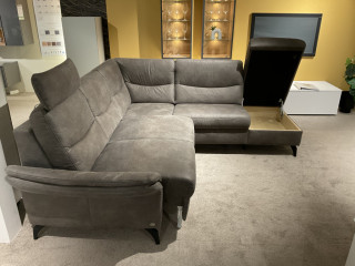 Bezug: Stoff Eco shadowFüße: Metall anthrazit Sitz: Superlastic Med Sitzhöhe: 49cmca. 239 x 92 x 235cmFunktion:- mit Armteilverstellung- Stauraum im offenen Abschluss- Vorziehfunktion elektrischZubehör: - Kopfstütze (63 x 22 cm)